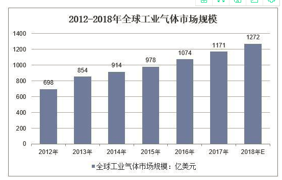 數(shù)據(jù)顯示,2017年全球工業(yè)氣體市場(chǎng)規(guī)模為1171億美元,同比增長(zhǎng)9.03%。預(yù)計(jì)到2018年全球工業(yè)氣體市場(chǎng)規(guī)模將達(dá)1272億美元。經(jīng)過(guò)多年的發(fā)展和兼并收購(gòu),全球工業(yè)氣體市場(chǎng)已經(jīng)形成了少數(shù)幾家企業(yè)占據(jù)全球市場(chǎng)大多數(shù)份額的市場(chǎng)格局。全球主要有四大氣體公司:德國(guó)林德集團(tuán)(Linde)、法國(guó)液化空氣集團(tuán)(AL)、美國(guó)Air Product、美國(guó)普萊克斯(PRAXAIR)。